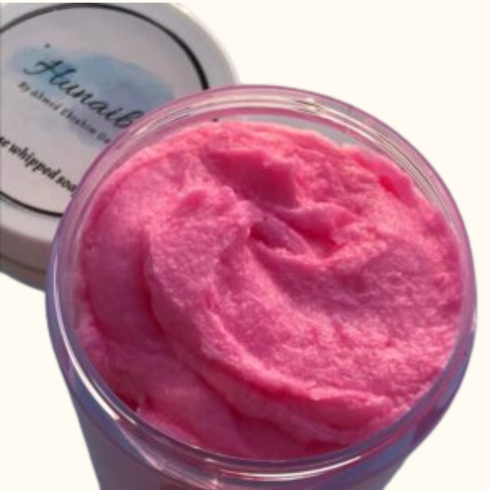 Indulge in the luxury of Hunaiba’s Rose Whipped Soap, a creamy, handcrafted blend designed to leave your skin moisturised, hydrated, and silky smooth. Enriched with shea butter, cocoa butter, almond oil, and rose essential oil, this whipped formula lathers into a soft foam that cleanses gently while nourishing deeply.